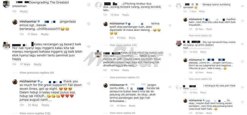 Dalam pada itu, ada juga segelintir netizen yang memberi kata-kata positif dan meminta Misha tidak terasa hati dengan komen negatif netizen.