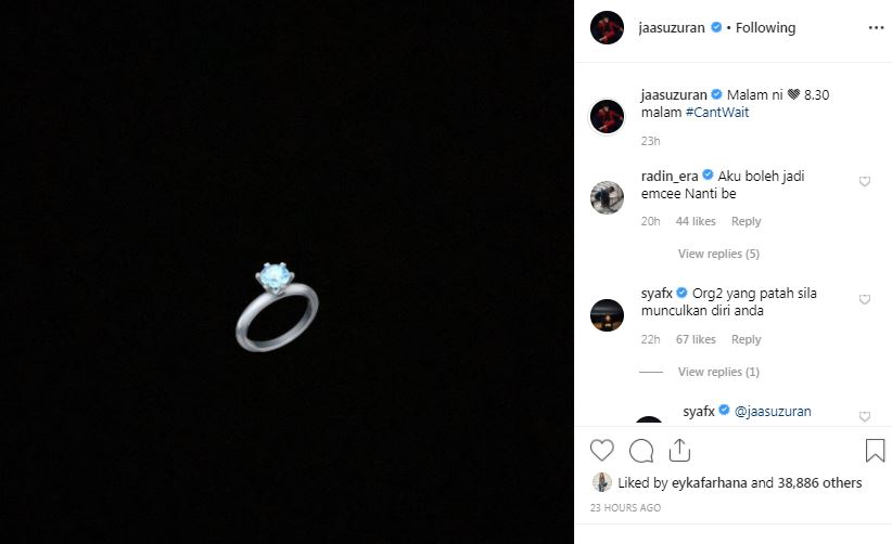 Jaa memberi bayangan seakan-akan mahu memperkenalkan wajah tunangnya.