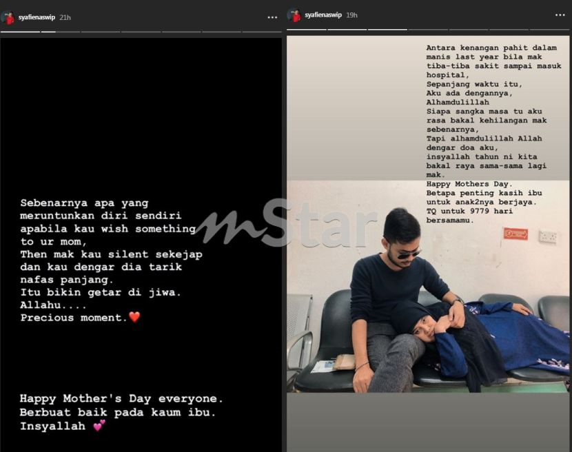 Pelakon filem Songlap itu memuat naik foto bersama ibunya di laman Instastory sempena sambutan hari ibu pada Ahad, 12 Mei 2019.