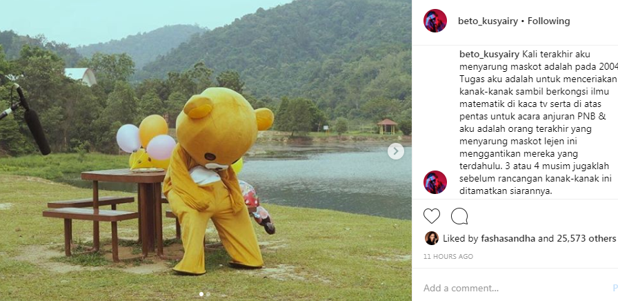 PELAKON Beto Kusyairi berkongsi pengalaman ketika dia menjadi individu terakhir yang menyarungkan maskot untuk rancangan kanak-kanak terkenal iaitu Along pada 15 tahun lalu.