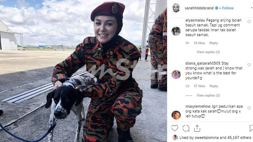 GARA-gara memuat naik foto pegang anjing, ruang komen di Instagram pelakon Sarah Hildebrand dihujani pelbagai reaksi daripada netizen.