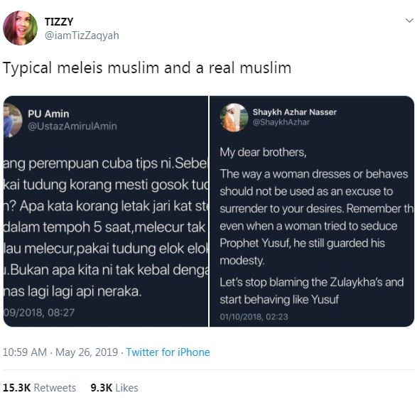 Menerusi Twitter, Tiz, 31, berkata pandangan yang diutarakan PU Amin memperlihatkan pendakwaah bebas itu sebagai “Melayu Muslim yang tipikal”.