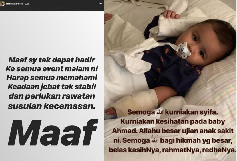 Memaklumkan mengenai perkara itu di Instagram, Sharnaaz turut meminta orang ramai mendoakan kesihatan anak lelakinya itu.
