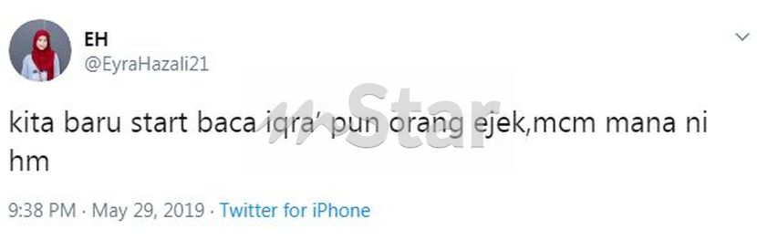 Eyra diminta mengulas mengenai luahan dia berasa sedih apabila ada netizen mempersendakan dirinya yang baru belajar membaca Iqra di laman Twitter.