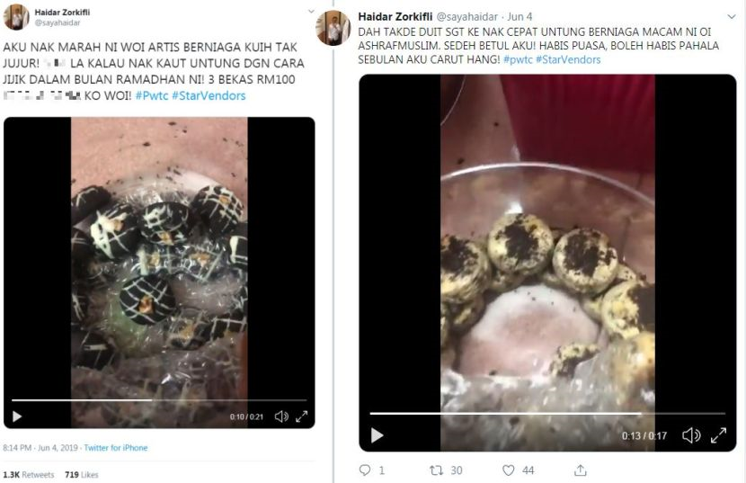 Terdahulu, seorang lelaki seorang lelaki 'naik hantu' dengan menghamburkan kata-kata kesat apabila kuih raya jenama Ashraf Muslim yang dibelinya 'tak penauh balang'.