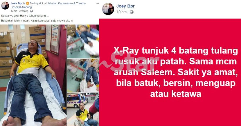 Menurut Joey atau nama sebenarnya Johari Mat Rozekhi, 55, kecederaan yang dialaminya sama seperti apa yang berlaku kepada Allahyarham Saleem.
