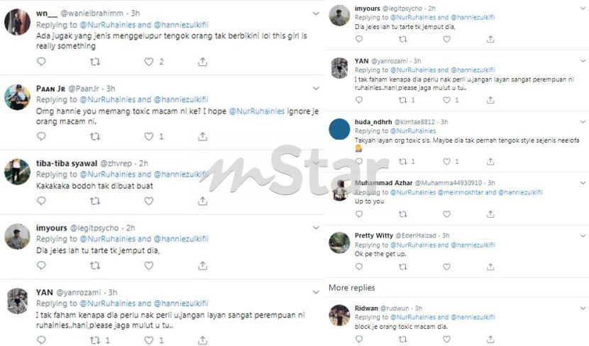 Bagaimanapun, rata-rata pengikutnya di laman tersebut menyatakan sokongan kepada Ruhainies dan meminta dia mengabaikan komen sedemikian.