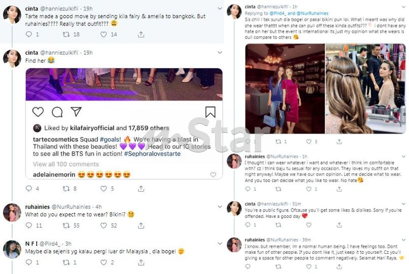 PENAMPILAN pelakon Ruhainies semasa menghadiri pelancaran sebuah produk kosmetik jenama antarabangsa di Bangkok, Thailand, baru-baru ini mengundang perbalahan netizen di laman Twitter.