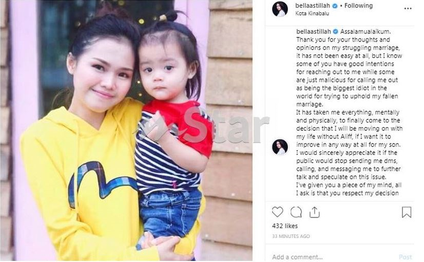 ARTIKEL BERKAITAN: Bella nekad teruskan kehidupan tanpa Aliff, katanya "mental dan fizikal saya terganggu"