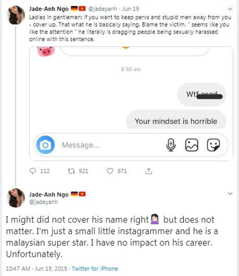 Menurut As'ad, 18, dia terkejut apabila instafamous berasal dari Vietnam dikenali sebagai Jadey Anh memuat naik perbualan DM mereka di Instagram sehingga menimbulkan salah faham dalam kalangan peminat.