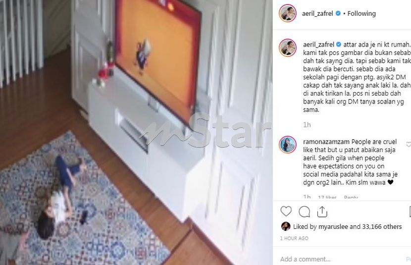 Aeril membuat penjelasan itu berikutan rimas dengan pertanyaan netizen yang menuduh dia dan isterinya pelakon Wawa Zainal tidak menyayangi anak sulungnya itu.
