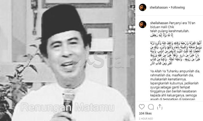 "Ya, penyanyi 70-an Halil Chik telah kembali ke rahmatullah pagi tadi.