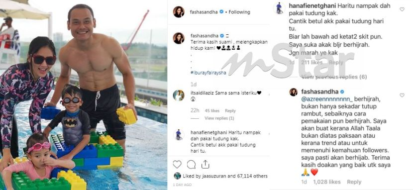 Sebelum itu, Fasha tampil mengenakan hijab di semua acara hiburan termasuk ketika keluar menjalankan aktiviti harian sepanjang bulan Ramadan lalu.