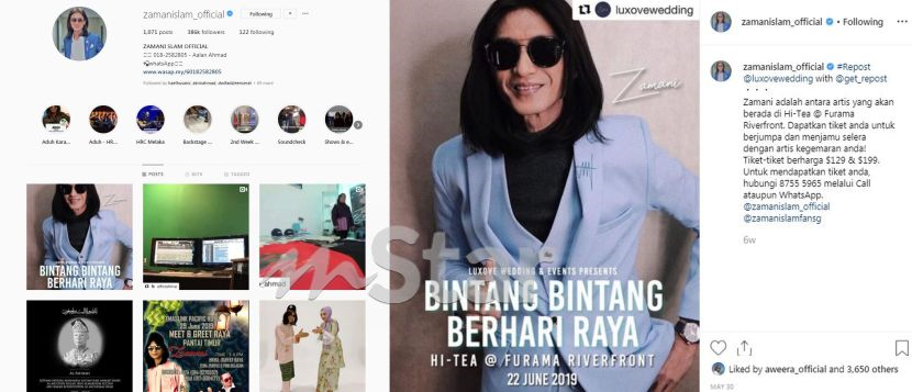 Kali terakhir akaun Instagram Zamani dikemas kini ialah pada Mei lalu.