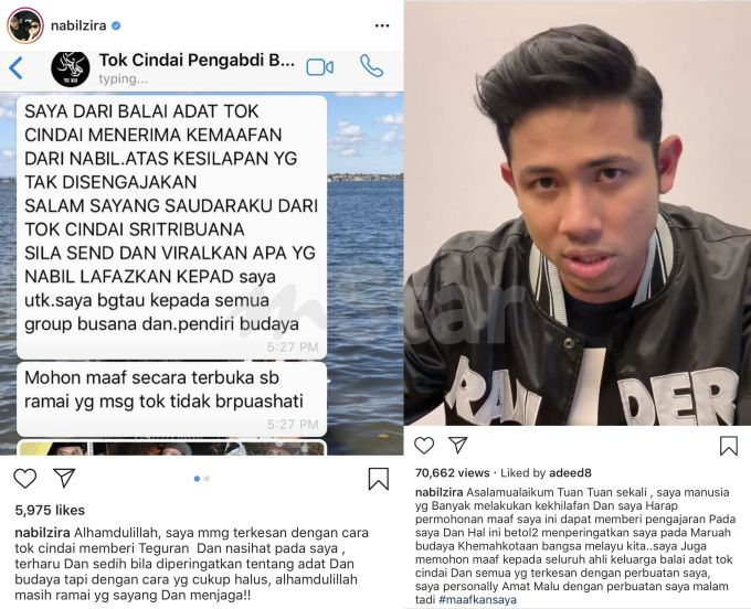 Bagaimanapun menerusi video pendek yang dimuat naik di Instagram, Nabil tampil mengakui keterlanjurannya dan membuat permohonan maaf secara terbuka.