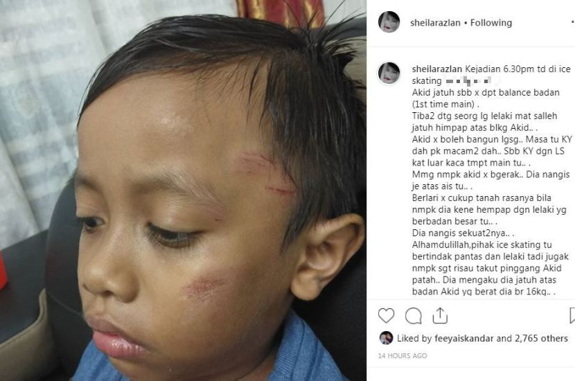 "Alhamdulillah pihak ice skating tu bertindak pantas dan lelaki tadi juga nampak sangat risau takut pinggang Akid patah.