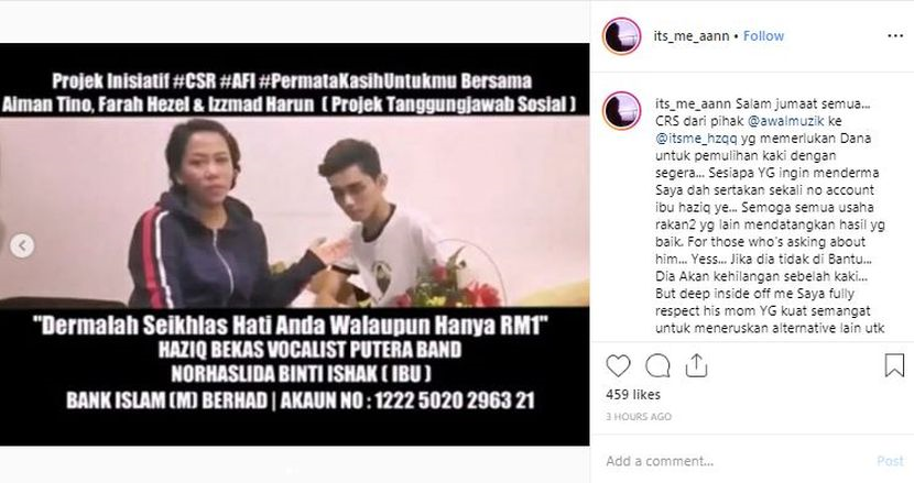 Untuk mereka yang ingin membantu menghulurkan sumbangan kepada Haziq bolehlah menghubungi ibunya Linda Eva menerusi laman Instagram @lindaeva_official.