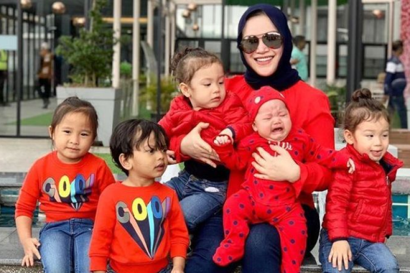 Zizie bersama anak-anak dan lima orang pembantunya.