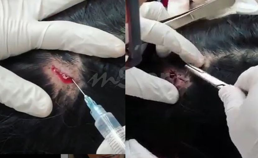 Elyana turut berkongsi rakaman proses ketika doktor sedang menjahit luka kecil di bahagian kepalanya menerusi laman Instagram.