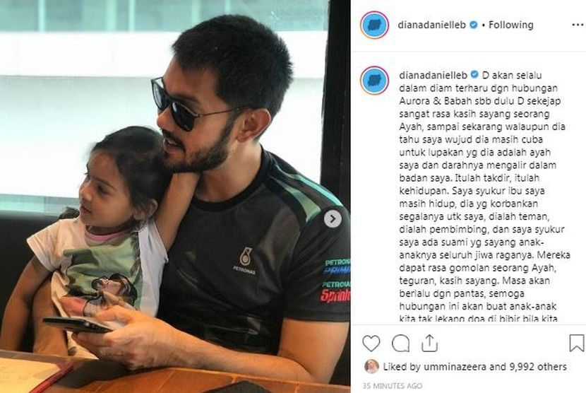 "D (Diana) sekejap sangat rasa kasih sayang seorang ayah, sampai sekarang walaupun dia tahu saya wujud... dia masih cuba untuk lupakan yang dia adalah ayah saya dan darahnya mengalir dalam badan saya.