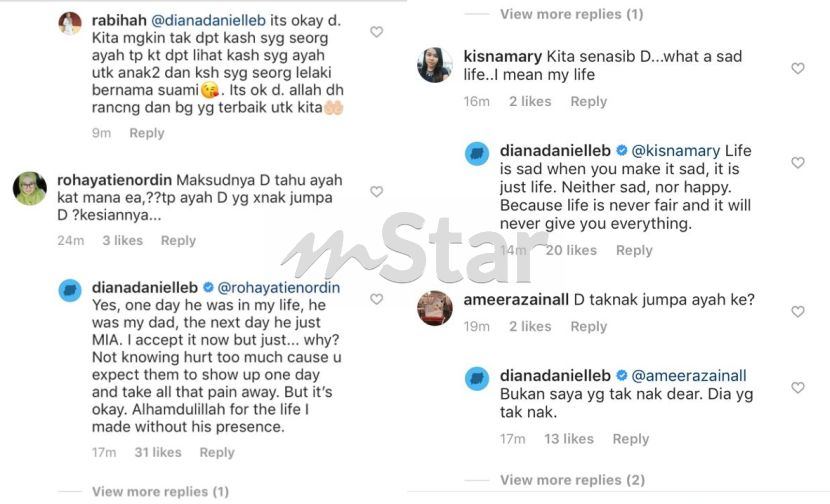 PERKONGSIAN pelakon Datin Diana Danielle mengenai kisah hidupnya yang dibesarkan tanpa kasih seorang bapa mengundang simpati netizen.