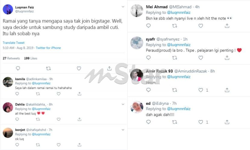 "Tahun ini saya dapat tawaran sertai program itu... kawan-kawan, media dan peminat menyokong tapi saya terpaksa tolak kerana nak memberi tumpuan kepada pelajaran.