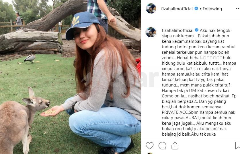 "Nasihat boleh nasihat tapi biar berpada-pada dan paling best yang komen semua private account. Sebelum bercakap fasal aurat, mulut dan lidah kena jaga juga," ujarnya.