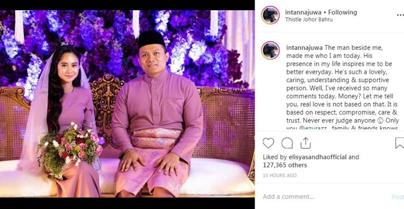 "Dia seorang yang sangat penyayang, memahami dan sentiasa menyokong. Jadi, saya ada terima banyak komen hari ini. Duit? Biar saya beritahu anda, cinta sejati bukan berdasarkan perkara itu.