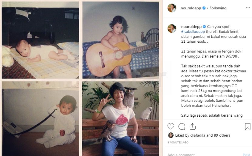 Nourul turut berkongsi beberapa gambar ketika anaknya masih kecil di laman Instagramnya pada Selasa.