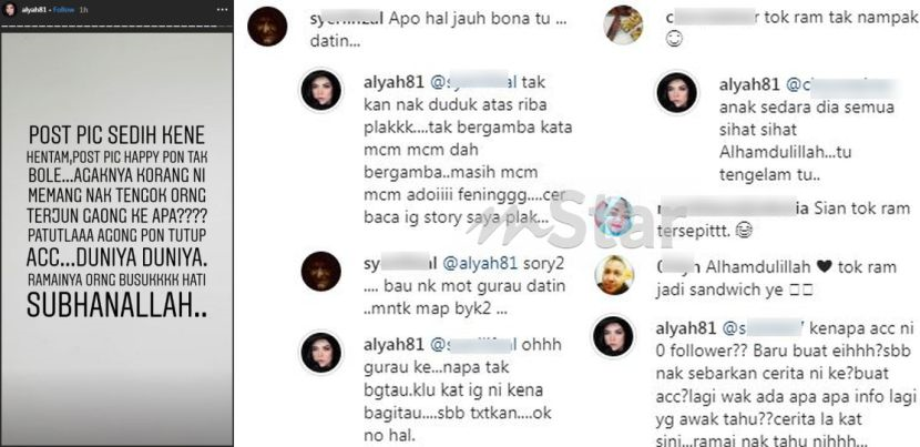 Selain itu, menerusi ruangan komen, Alyah dilihat turut membalas beberapa komen yang ditinggalkan netizen.