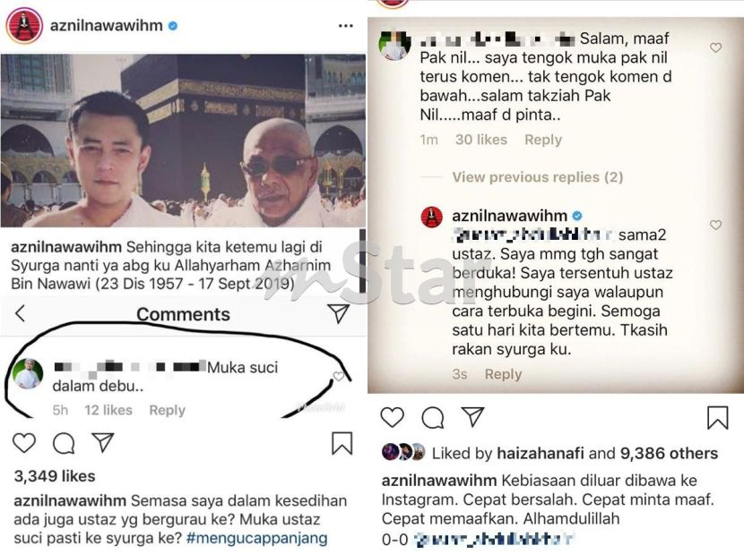 Sebelum itu, menerusi sekeping foto kenangan Aznil bersama abangnya yang dirakam di hadapan Kaabah, ustaz berkenaan meninggalkan komen berbentuk gurauan sehingga menyinggung hati pengacara tersebut.