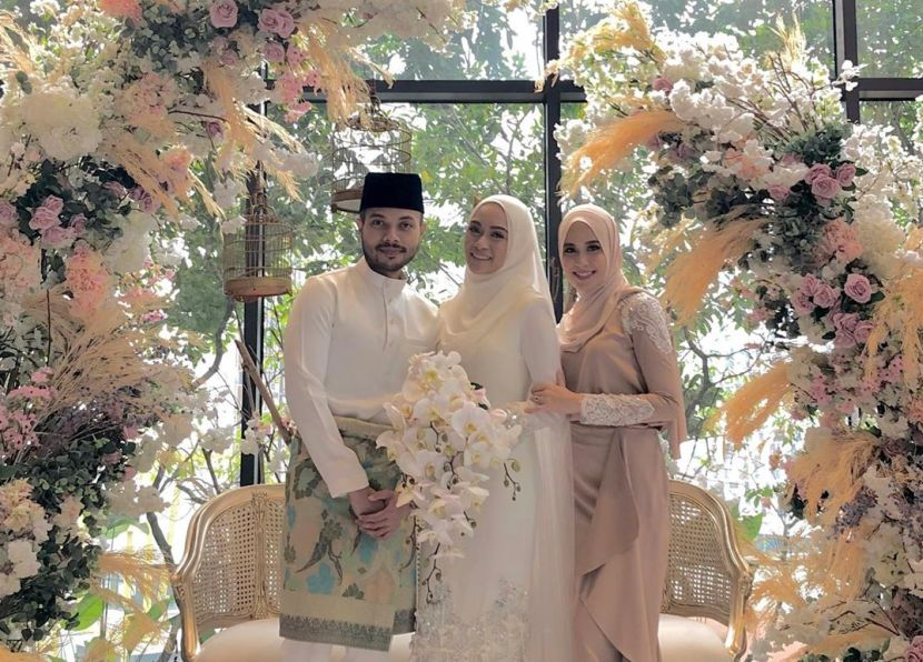 Pelakon Bella Dally bergambar dengan pengantin, Anis dan suami, Hariz.