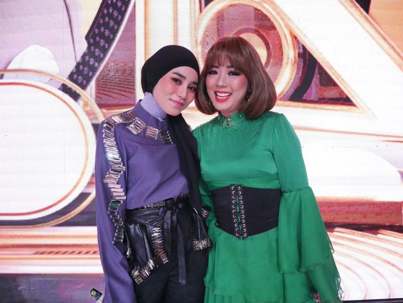 Uyaina bersama salah seorang pengkritik tetap dalam Golden Memories Asia, Soimah (kanan).