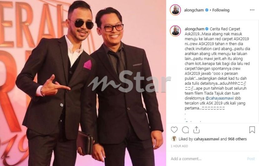 "Cerita karpet merah ASK2019... Masa abang nak masuk menuju ke laluan karpet merah ASK2019 ini, krew ASK2019 tahan dan kemudian dia periksa kad jemputan abang.