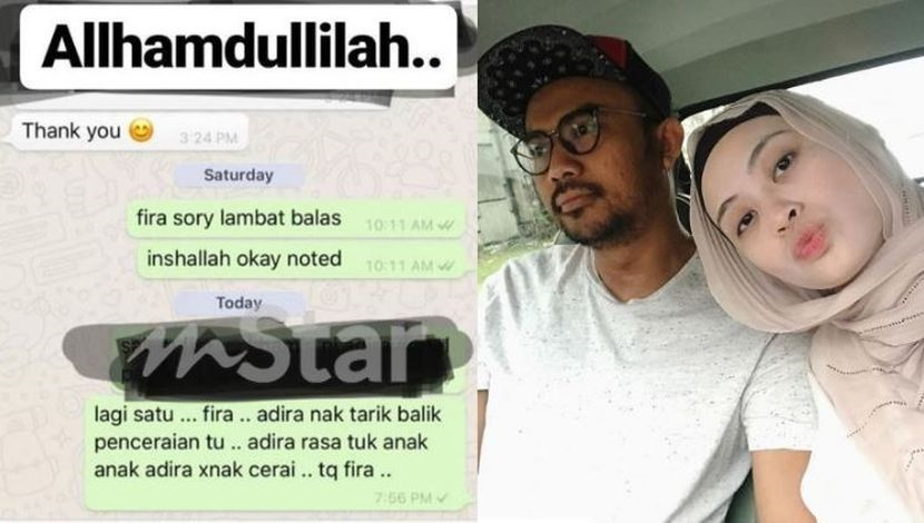 Pada Khamis lalu, Adnan memberi gambaran hubungan rumah tangganya bakal baik seperti sedia kala dengan berkongsi paparan skrin perbualan seorang wanita dikenali sebagai Fira memberitahu bahawa Adira berkemungkinan menarik balik permohonan cerai yang difailkan sebelum ini.
