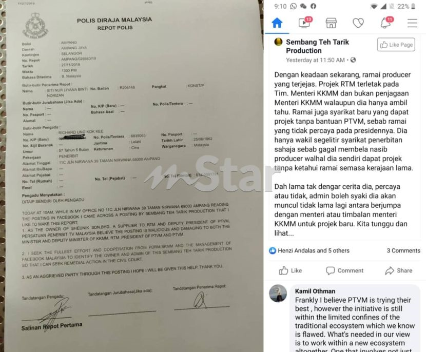 Susulan itu, Timbalan Presiden PTVM, Richard Ung Kok Kee membuat laporan polis di Balai Polis Ampang, Selangor pada Rabu.
