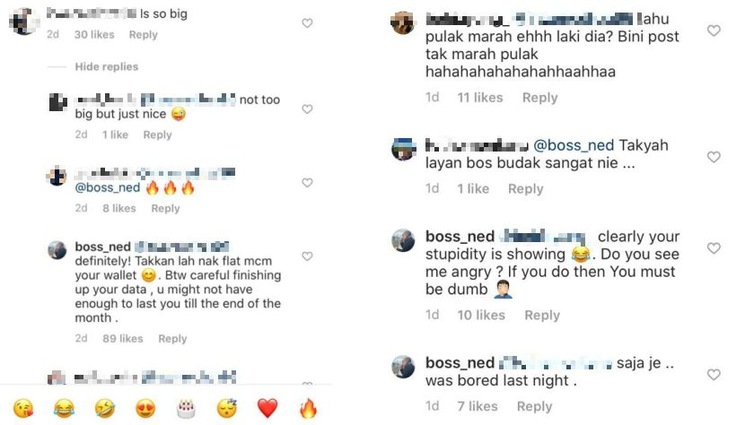 Nedim berkata, dia sengaja membalas komen tersebut kerana berasa bosan.