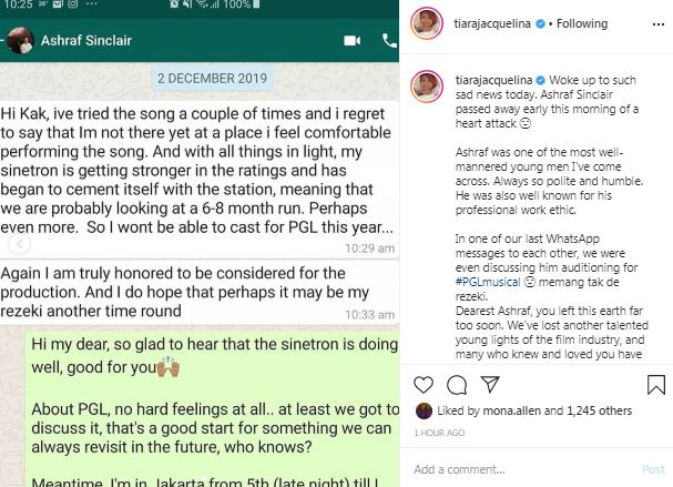 Tiara yang menyifatkan Allahyarham seorang lelaki yang baik itu turut mendedahkan perbualan terakhir mereka di aplikasi Whatapps pada Disember lalu.