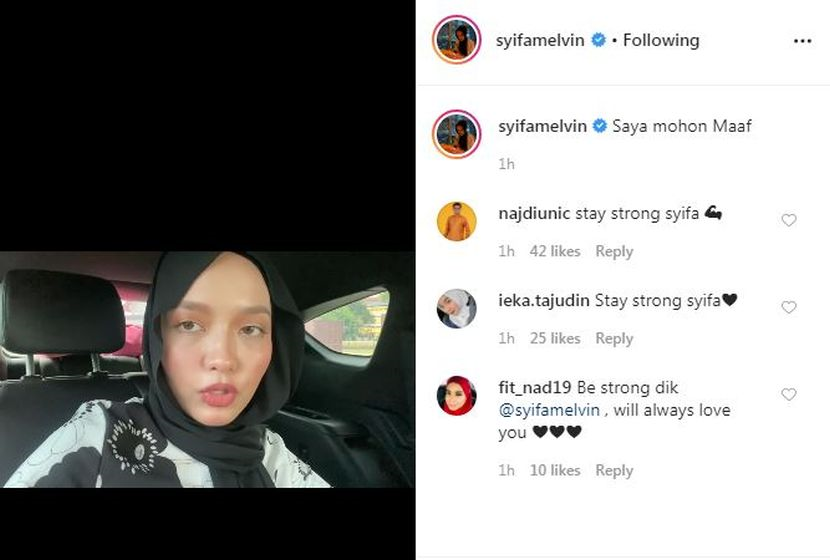 Syifa membuat rakaman video permohonan maafnya menerusi Instagram.