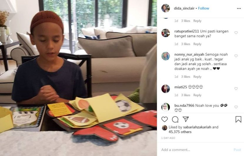 "Kami nak lihat Noah membesar menjadi pemuda yang baik, bahagia dan penuh kasih seperti ayahnya," tulisnya.