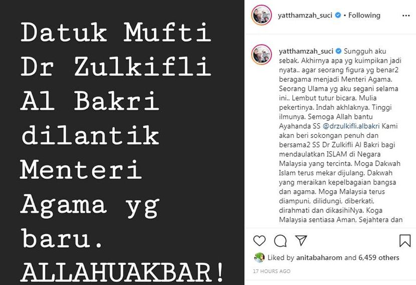 "Sungguh aku sebak akhirnya apa yang ku impikan jadi nyata agar seorang figura yang benar-benar beragama menjadi Menteri Agama.