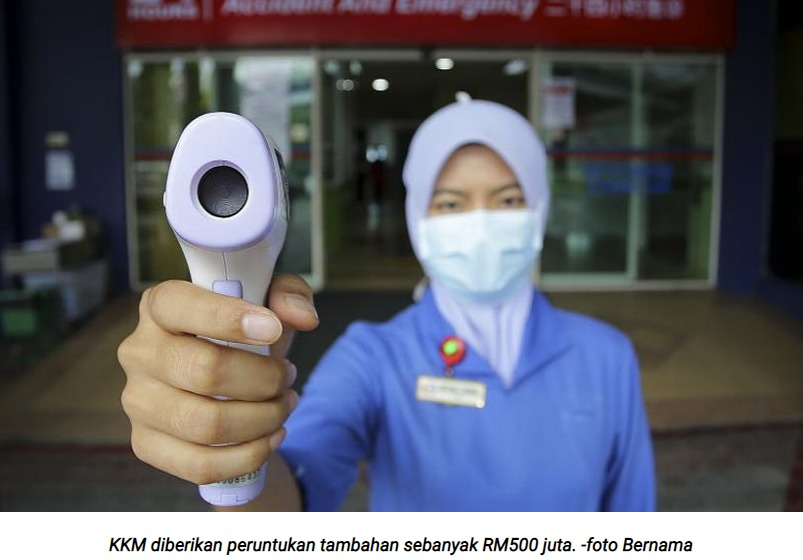 Antaranya, kerajaan juga bersetuju menyalurkan peruntukan tambahan sebanyak RM500 juta kepada Kementerian Kesihatan bagi menyokong usaha menangani Covid-19.