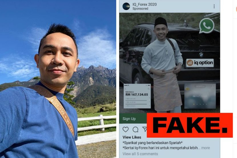"Palsu! Apa benda la IQ Forex 2020 ni. Nak scam orang pun agak-agaklah ya. Pakailah gambar sendiri, ni pakai sebat je gambar raya aku.