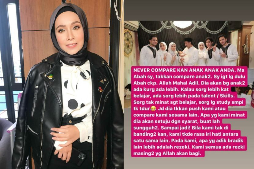 HUBUNGAN rapat penyanyi Amira Othman bersama lima adik-beradiknya sering menjadi inspirasi kepada netizen yang ingin mengetahui rahsia mereka dibesarkan.Amira atau nama sebenar Nadia Amira Othman, 27, berkongsi bahawa ibu bapanya tidak pernah sesekali membandingkan kebolehan dan kemahiran anak-anak.ARTIKEL BERKAITAN: Amira Othman bertuah dua adik kacak jadi penyanyi Malah, bapanya sentiasa berpesan setiap seorang dari mereka mempunyai kelebihan dan kekurangan masing-masing."Jangan pernah bandingkan anak-anak anda. Ibu bapa saya takkan bandingkan anak-anak mereka. Bila kami tak dibandingkan, kami tak ada rasa iri hati antara satu sama lain. AMIRA OTHMAN PENYANYI "Saya ingat lagi dulu ayah cakap, Allah Maha Adil... dia akan bagi anak-anak ada kurang ada lebih."Kalau seorang lebih dekat pendidikan, ada seorang lebih pada bakat atau kemahiran. Seorang tak minat belajar, seorang lagi mengulang kaji sampai tak tidur," katanya.Kakak kepada penyanyi Irfan Haris ini juga berkata, ibu bapanya sentiasa memberi sokongan terhadap apa sahaja yang menjadi minat mereka adik-beradik.Hasil didikan itu juga membuatkan mereka tidak pernah ada sifat iri hati antara satu sama lain dan menganggap kelebihan masing-masing satu rezeki. Amira (dua dari kanan) bersama empat daripada lima adik-beradiknya. "Jadi, dia tak akan paksa kami atau bandingkan kami antara satu sama lain. Apa yang kami minat dia akan setuju, dengan syarat buatlah dengan bersungguh-sungguh sampai jadi."Bila kami tak dibandingkan, kami tak ada rasa iri hati antara satu sama lain."Pada kami, apa yang adik-beradik lain lebih adalah rezeki. Kami semua ada rezeki masing-masing yang Allah akan bagi," ujarnya.Amira merupakan anak kedua daripada enam orang adik-beradik.Selain Irfan Haris, penyanyi ini turut mempunyai seorang kakak, seorang adik perempuan dan dua orang adik lelaki. Nak macam-macam info? Join grup Telegram mStar!
