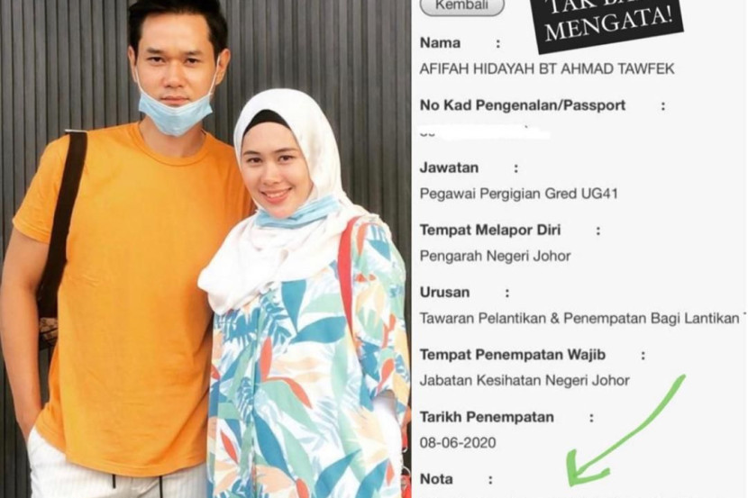 Nubhan menerusi laman Instagram menegaskan dakwaan tersebut tidak benar memandangkan isterinya sudah menerima tawaran untuk pekerjaaan tetap dan ditugaskan ke hospital kerajaan di Johor.