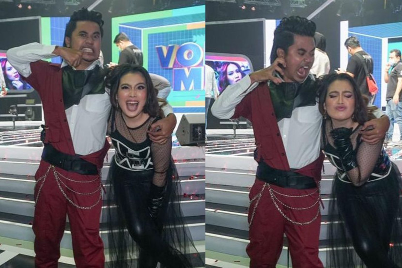 Aksi tersebut dirakam selepas mereka selesai membuat persembahan di pentas Vokal Mania yang berlangsung pada malam, Ahad.