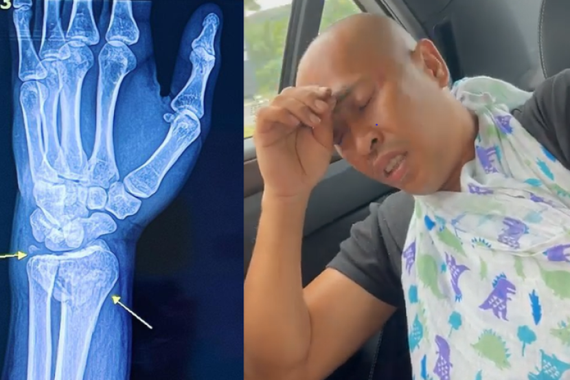"Masa nak bangun tu rasa tangan kiri sakit. Saya tengok keadaan tangan dah bengkok, eh... saya syak patah ni.