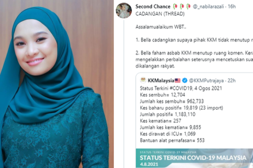 Terdahulu, Nabila menerusi ciapan di Twitter meminta KKM memberi peluang orang ramai memberi pendapat dan bertanya info berkaitan Covid-19 di laman sosial rasmi agensi itu.