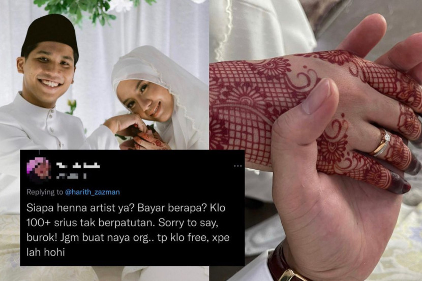 LUKISAN inai di tangan isteri kepada penyanyi Harith Zazman iaitu Nuramalina Ghakaskhah pada hari pernikahannya mengundang kritikan segelintir netizen di laman sosial. Disifatkan sebagai tidak kemas, pelukis inai atau henna yang dikenali sebagai Elmyliana Alia atau Alia mengakui dia berasa sedih membaca komen negatif daripada netizen. ARTIKEL BERKAITAN: Tahniah! Harith Zazman kini suami model MV ‘Cute’, tak ‘rushing’ fikir soal anak - “Nak enjoy dulu dengan status suami” Tidak menyedari pasangan pengantin adalah orang yang dikenali, Alia bagaimanapun mahu mengabaikan perkara itu memandangkan isteri penyanyi berkenaan menyukai hasil kerjanya. Alia turut berkongsi kepada mStar perbualan isteri Harith yang berpuas hati dengan hasil kerjanya. "Agak terkejut dan kecewa apabila inai yang saya lukis dikutuk netizen di laman sosial. Sejujurnya, saya tak tahu pun pasangan pengantin itu dikenali ramai. "Saya tak tahu yang pengantin lelaki adalah penyanyi manakala isterinya seorang Instafamous. Bila dia tag saya di IG, barulah saya tahu mereka terkenal. "Tak sangka netizen kutuk inai yang saya lukiskan itu. Tapi tak apa, yang penting, pengantin suka, berpuas hati dan puji inai saya kemas," katanya kepada mStar. Sebelum ini, seorang wanita di laman Twitter mengkritik lukisan inai di tangan isteri Harith pada hari pernikahannya pada Sabtu lalu dilihat tidak kemas. Saya memang tak pernah menaja selebriti atau Instafamous. ELMYLIANA ALIA PELUKIS INAI "Siapa henna artist ya? Bayar berapa? kalau 100+ serius tak berpatutan. Sorry to say, buruk! Jangan buat naya orang. Tapi kalau percuma, tak apa la," tulis individu itu. Bagaimanapun, komen tersebut telah mengundang kecaman netizen yang berpendapat individu tersebut bersikap biadab. Dalam pada itu, Alia memberitahu dia tidak pernah memberi perkhidmatan lukis inai percuma kepada mana-mana selebriti. Biarpun komen tersebut menggores hatinya, namun Alia yang berusia 36 tahun ini tetap akan meneruskan kerjayanya sebagai pelukis inai. Harith dan isteri bernikah pada Sabtu. "Saya memang tak pernah menaja selebriti atau Instafamous. Sejujurnya masa baca komen itu, memang terdetik hati saya kenapalah jahat sangat orang ini. "Tapi nasib baik rakan-rakan pelukis inai lain banyak beri sokongan. Saya tak akan serik untuk melukis inai untuk sesiapa termasuk selebriti. "Sebab itu adalah kerjaya saya dan punca rezeki saya. Biarlah orang nak kutuk, asalkan pelanggan saya berpuas hati dan bayar hasil karya saya," ujarnya. Harith Zazman sah bergelar suami kepada model video muzik lagu Cute itu pada Sabtu di Pejabat Agama Hulu Langat. Dapatkan info dengan mudah dan pantas! Join grup Telegram mStar DI SINI TONTON VIDEO PILIHAN!