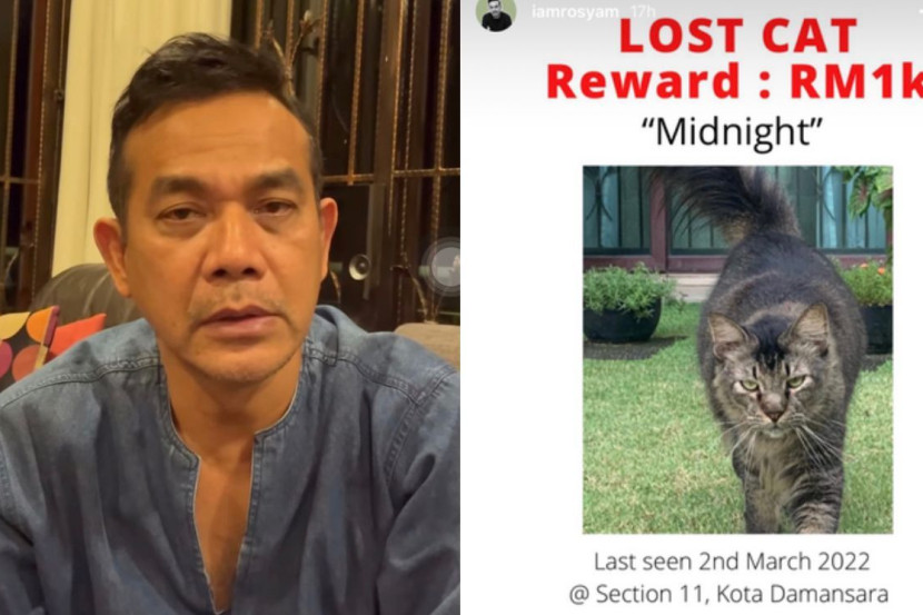 PELAKON terkenal Datuk Rosyam Nor menawarkan ganjaran sebanyak RM1,000 kepada sesiapa yang menjumpai kucing kesayangannya yang hilang sejak 2 Mac lalu.Rosyam Nor atau nama sebenarnya Mohamed Noor Shamsuddin, 55, menerusi Instastory turut memuat naik foto kucingnya yang diberi nama Midnight. ARTIKEL BERKAITAN: Bukan sebab kurang pelakon ‘jantan’, Rosyam Nor kata ramai nak tengok hero wajah ‘Oppa’ - “Dulu muka pecah macam saya boleh jadi hero” ARTIKEL BERKAITAN: Pelakon tak mahu vaksin patut tarik diri... Rosyam Nor minta penggiat seni patuh SOP - “Jangan susahkan orang, semua nak bekerja” Menerusi perkongsian itu, Rosyam juga menyenaraikan ciri-ciri kucing perliharaannya yang dilihat kali terakhir di Seksyen 11, Kota Damansara. Jadi, saya harap sesiapa yang jumpa kucing saya, boleh DM saya. ROSYAM NOR PELAKON "Kucing hilang. Ganjaran: RM1,000. 'Midnight'. Kali terakhir dilihat pada 2 Mac 2022 di Seksyen 11, Kota Damansara. "Jantan, kacukan breed, hitam keperangan, mata hijau, ekor panjang, berisi, tiada kolar, tiada jalur, sangat manja dengan orang," tulisnya. Menurut pelakon filem KL Gangster ini, seluruh keluarga berasa kehilangan dan berharap sesiapa yang menjumpai kucing itu akan memulangkannya semula.Rosyam mengakui dia berasa bimbang sekiranya ada individu yang mengambil kucingnya secara tidak sengaja memandangkan ia mudah mesra dengan orang lain. Rosyam bimbang individu terambil kucingnya yang mudah manja dengan orang. "Dah beberapa hari kucing saya namanya Midnight, tak balik-balik. Saya bela kucing ini daripada ibunya dan usia dia dah lebih lima tahun. "Jadi, saya harap sesiapa yang jumpa kucing saya, boleh DM saya. Sebab saya dah rindu pada dia. Saya cari dia... seluruh keluarga rasa kehilangannya. "Adik dia ada, tapi dia tak ada. Badan dia besar, manja dengan semua orang. Sesiapa terjumpa, minta tolong beritahu. "Sesiapa terambil, sebab dia cantik dan besar, minta dipulangkan semula... tolong," kata Rosyam Nor. Dapatkan info dengan mudah dan pantas! Join grup Telegram mStar DI SINI TONTON VIDEO PILIHAN!